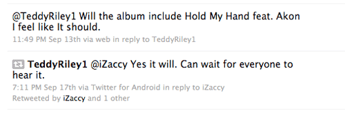 Michael Jackson’s Dangerous – Songwriter & Producer – Teddy Riley has confirmed via Twitter the new Michael Jackson album will feature a previously leaked song by Akon.