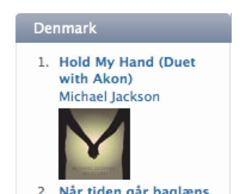 Congratulations to Michael Jackson – as the King Of Pop’s single “Hold My Hand” has landed its first number one spot on the official singles download charts in Denmark on iTunes.