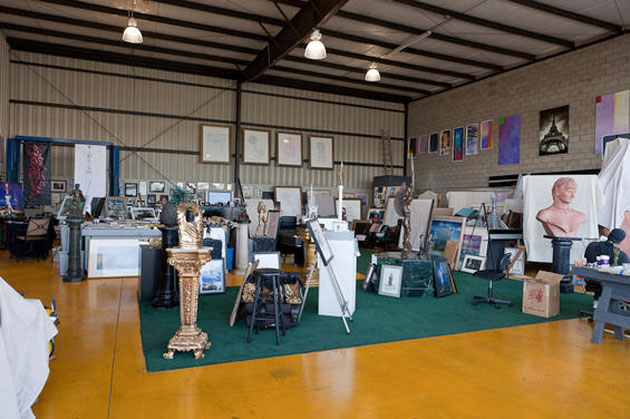 LA Weekly was the first to visit the (until now) top-secret Santa Monica airport hangar that Michael Jackson used as his studio and art storehouse. The art collection is currently owned by Brett Livingstone-Strong in conjunction with the Jackson estate. Here is a look @ inside Michael Jackson’s art studio.