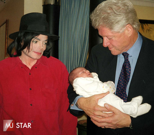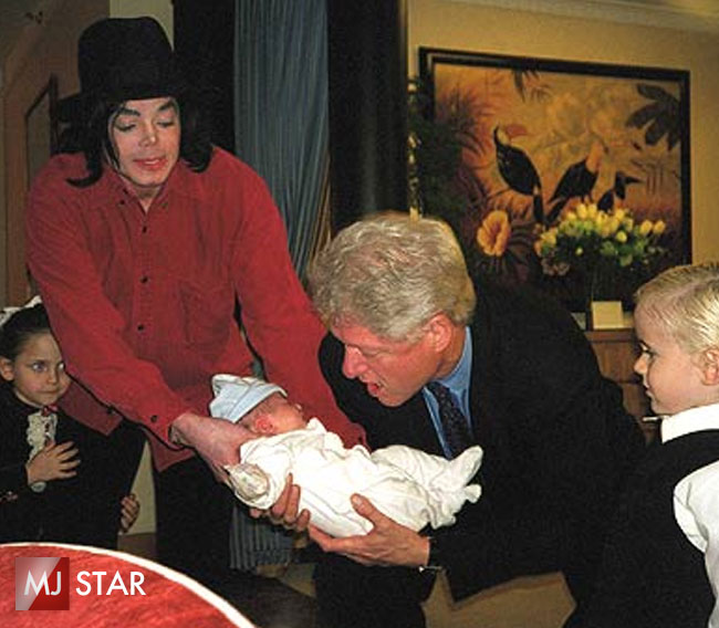 This is the moment when Michael Jackson introduced the former President of The United States, Bill Clinton, to his three children, Prince, Paris and Blanket: